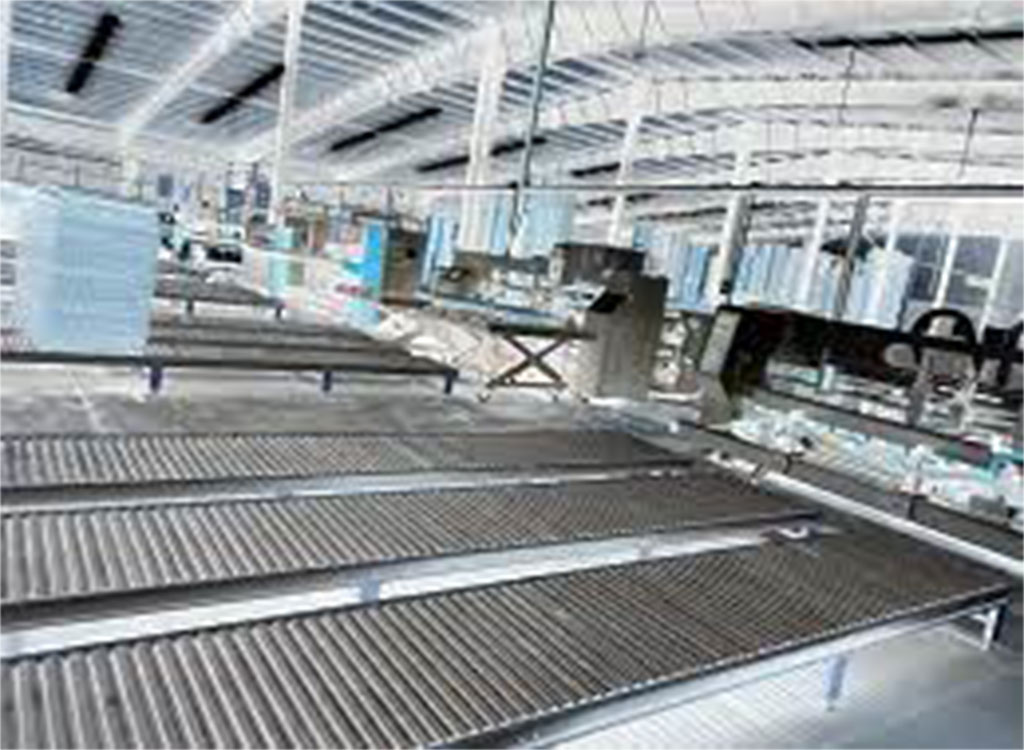 The output board is directly transferred to conveyor roller system and then to the printing machine